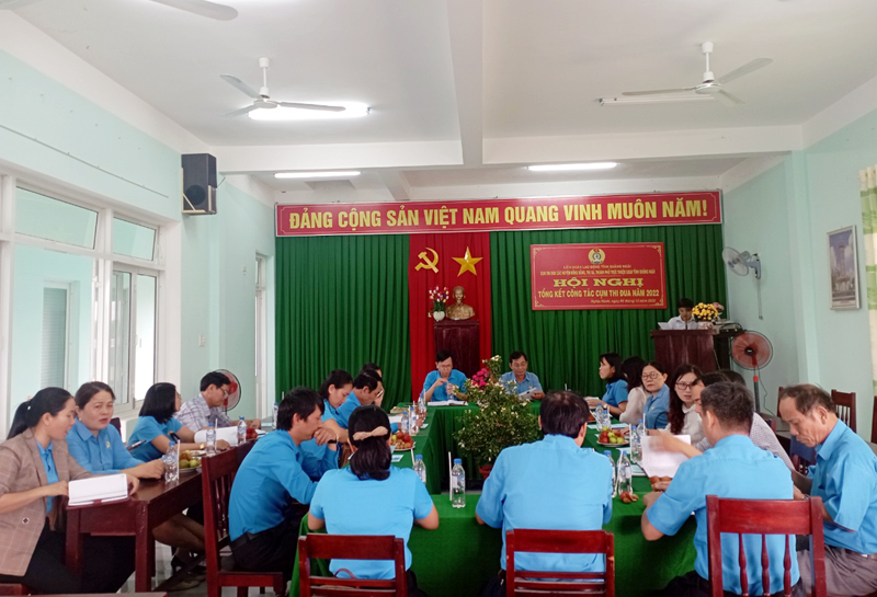 Chiều ngày 01/12/2022, tại Hội trường cơ quan Liên đoàn Lao động huyện Nghĩa Hành, Cụm thi đua Liên đoàn Lao động các huyện đồng bằng, thị xã và thành phố tổ chức Hội nghị tổng kết phong trào thi đua năm 2022.