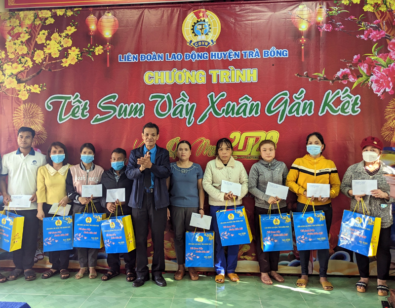 Nhằm mục đích chăm lo đời sống vật chất, tinh thần cho đoàn viên, người lao động có hoàn cảnh khó khăn trong dịp Tết Nguyên đán Quý Mão 2023, sáng ngày 12/01/2023, Liên đoàn Lao động huyện Trà Bồng tổ chức chương trình “Tết sum vầy - Xuân gắn kết” năm 2023.