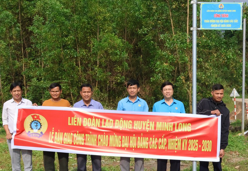 Liên đoàn Lao động huyện Minh Long vừa tổ chức bàn giao công trình thi đua chào mừng Đại hội Đảng các cấp nhiệm kỳ 2025-2030. Phó Chủ tịch Liên đoàn Lao động tỉnh Vũ Hoài Phương đến dự.