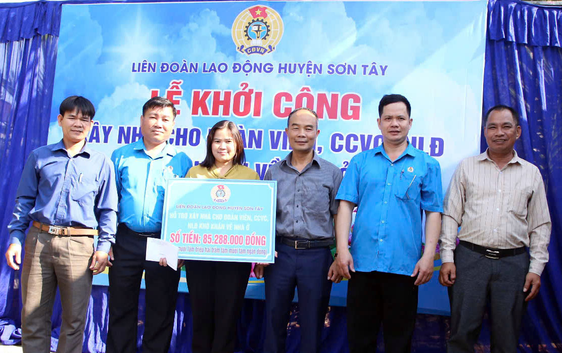 Liên đoàn Lao động huyện Sơn Tây vừa tổ chức Lễ khởi công xây dựng nhà cho đoàn viên khó khăn. Dự Lễ khởi công có đồng chí Đinh Quang Ven, Phó Bí thư Thường trực Huyện ủy.